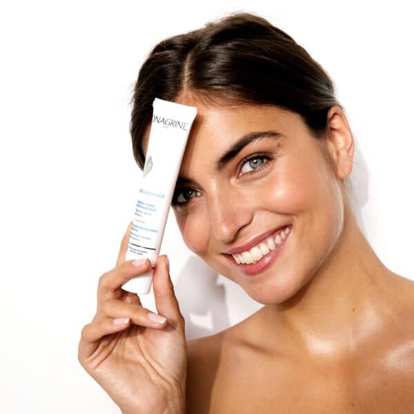 Algue rouge : L’algue rouge, par son action hyaluronic-like, absorbe l’eau à la surface et regonfle le matelas hydrique. Elle stimule aussi la synthèse d’acide hyaluronique (+211%*) et de céramides (+56%*).